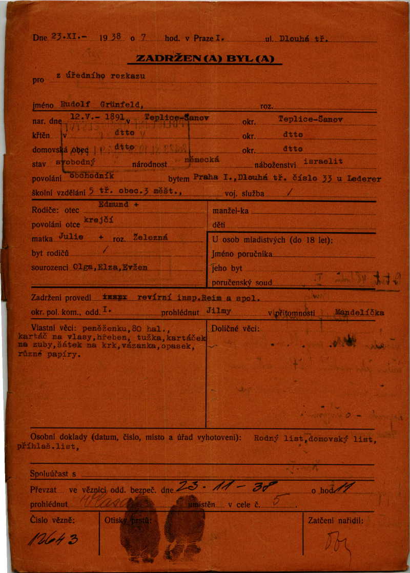 National archives Prague > Police Directorate Prague > 1941-1950 > G > Grünfeld Rudolf