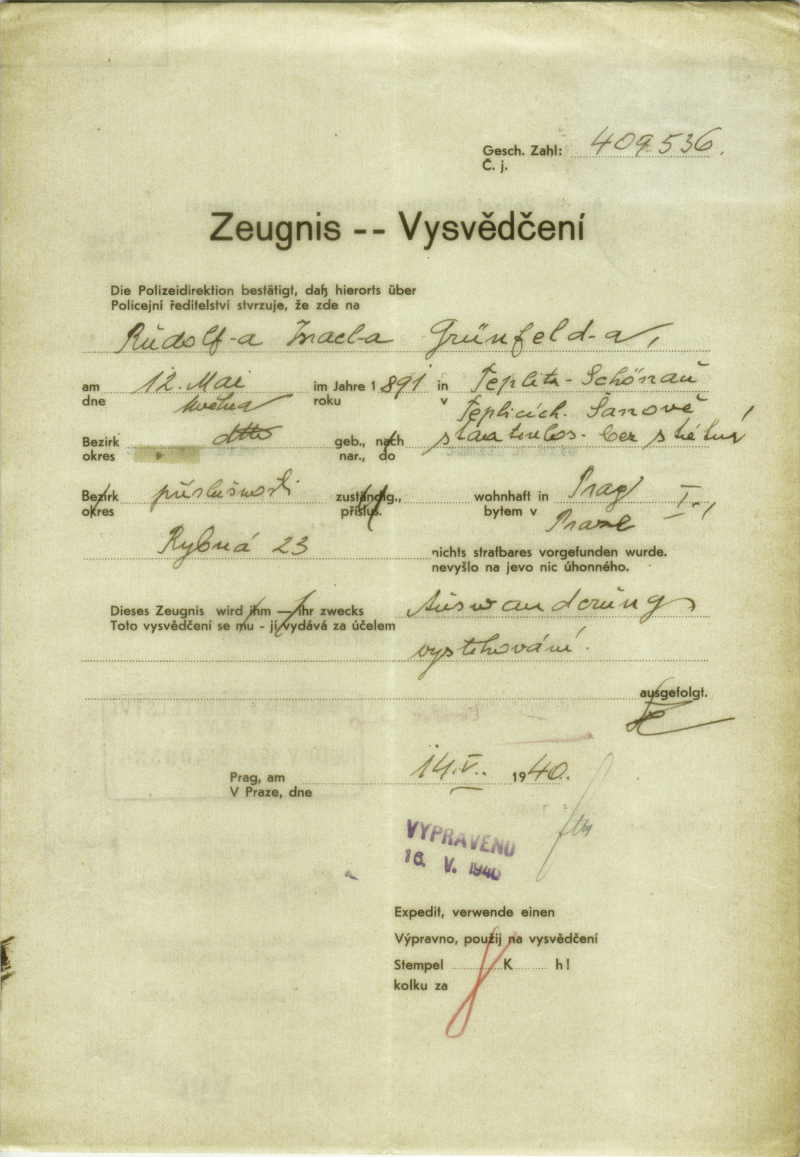 National archives Prague > Police Directorate Prague > 1941-1950 > G > Grünfeld Rudolf