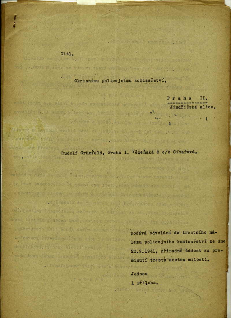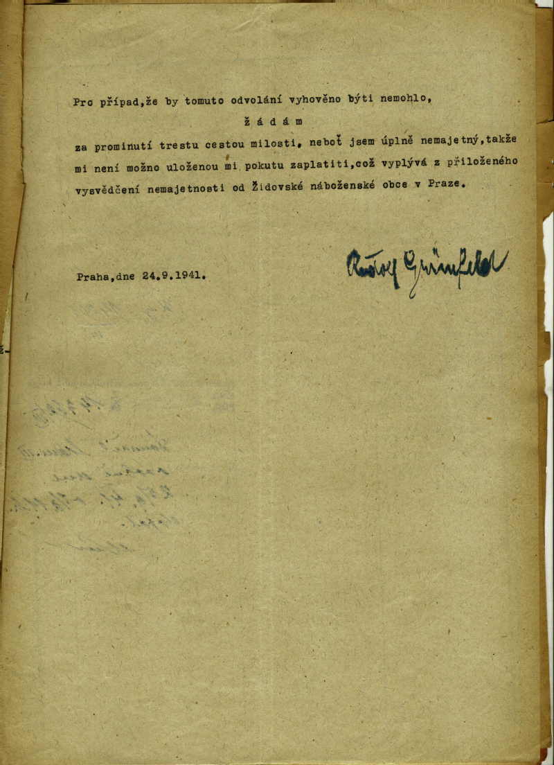 Grünfeld Rudolf: Odvolání proti trestnímu nálezu