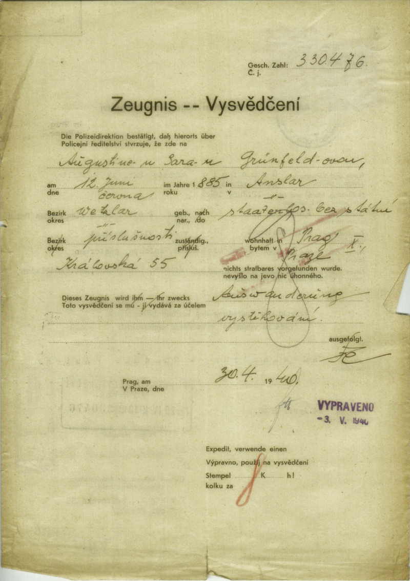 National archives Prague > Police Directorate Prague > 1941-1950 > G > Grünfeldová Augusta