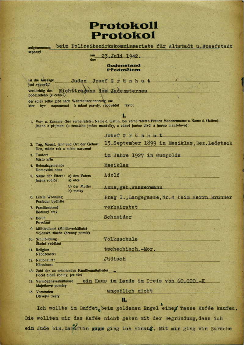 National archives Prague > Police Directorate Prague > 1941-1950 > G > Grünhut Josef