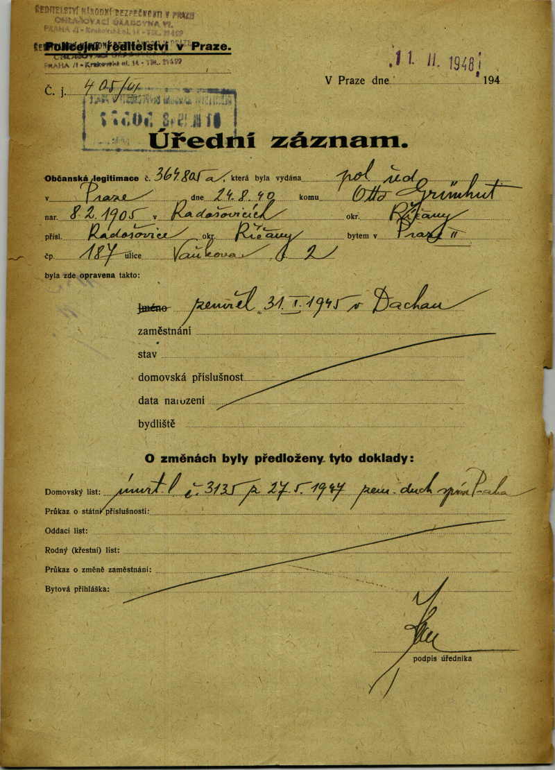 National archives Prague > Police Directorate Prague > 1941-1950 > G > Grünhut Otto