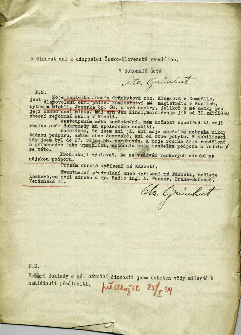 Grünhut Otto: Žádost o povolení k přestěhování