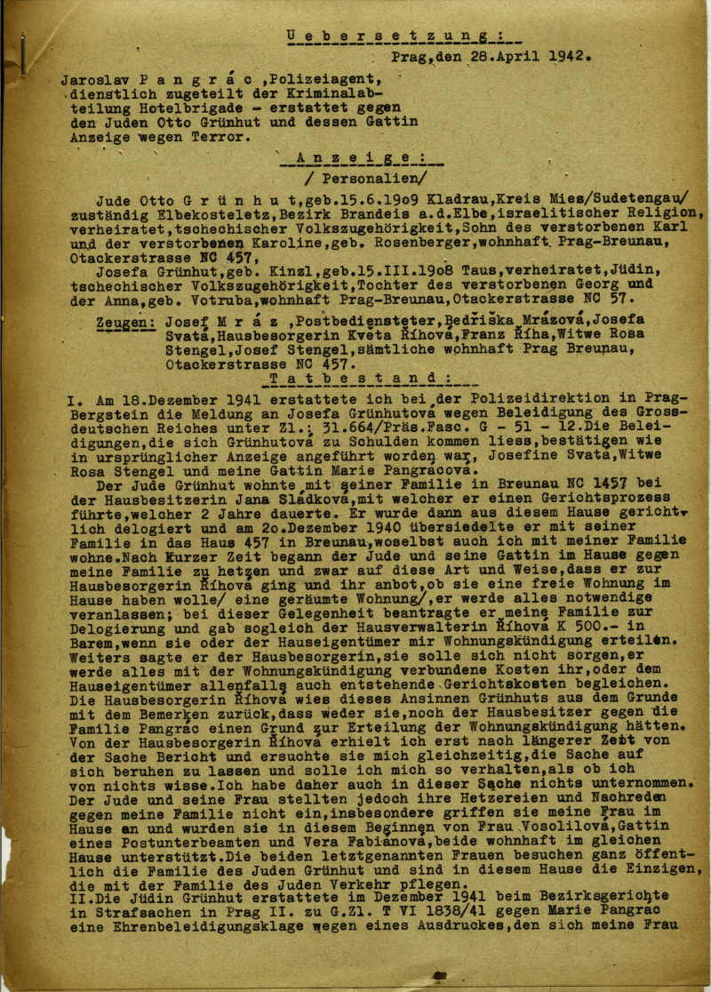 Grünhut Otto: Trestní oznámení