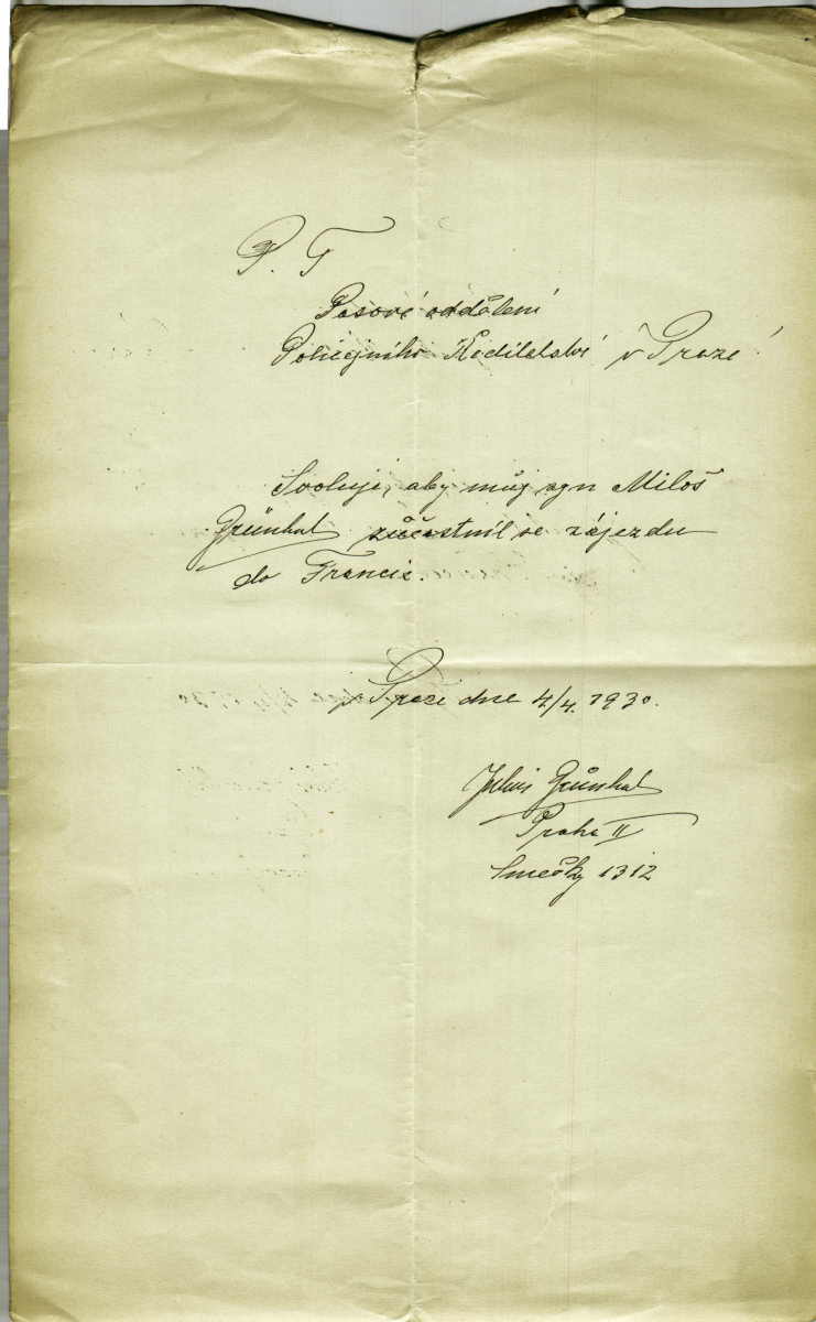 Grünhut Miloš: Vyjádření k žádosti o vydání cestovního pasu