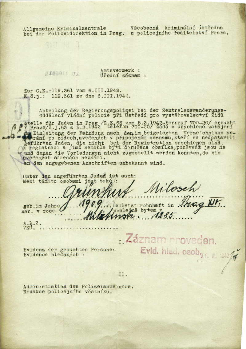 This database contains the names and fates of those who were deported from the territory of today’s Czech Republic, be it their homeland or may they have been deported to the Theresienstadt ghetto before from different european countries. Further, it contains basic information on those men, women and children, most of whom were Roma or Sinti, who died as prisoners of the so-called „Gypsy camp I“ Lety u Písku.