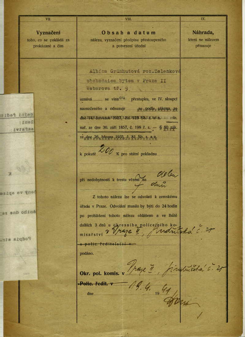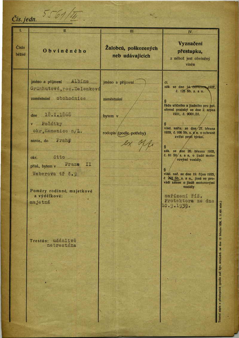 National archives Prague > Police Directorate Prague > 1941-1950 > G > Grünhutová Albína