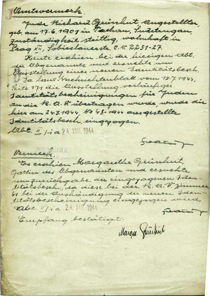 Grünhut Richard: Šetření o osobě