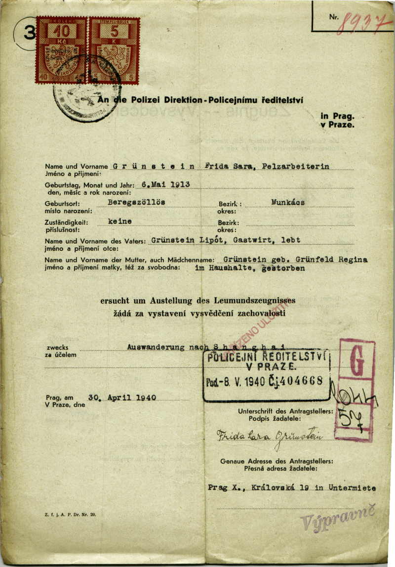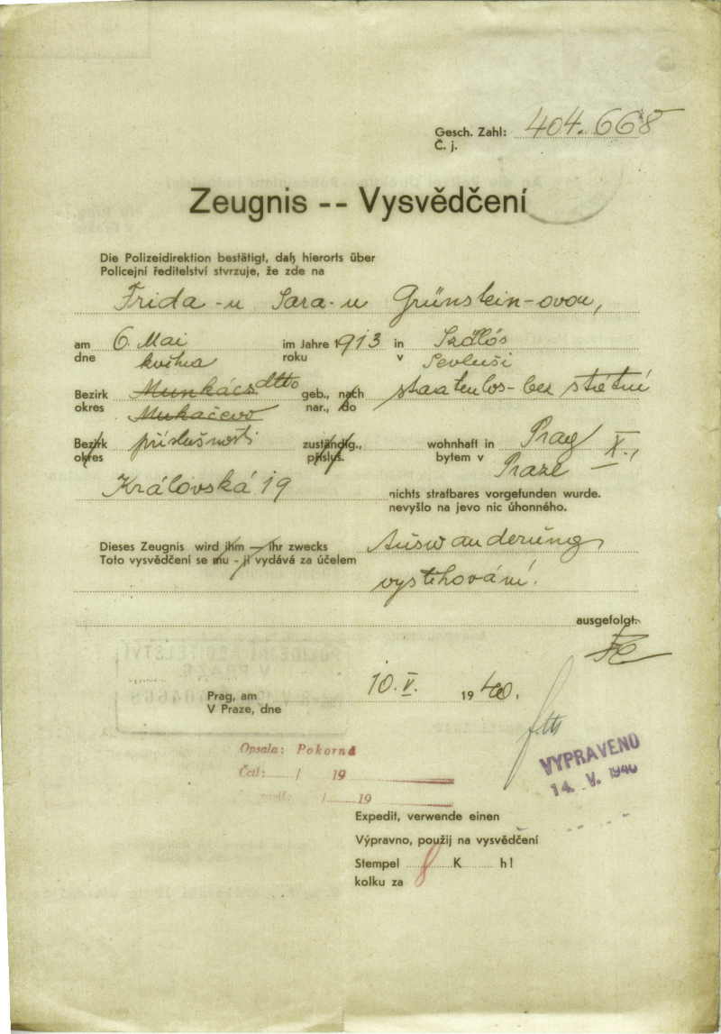 National archives Prague > Police Directorate Prague > 1941-1950 > G > Grünsteinová Frída