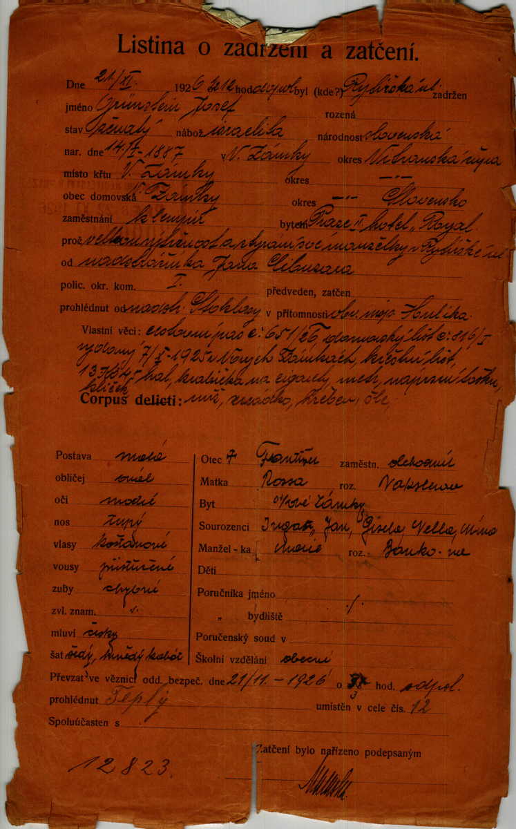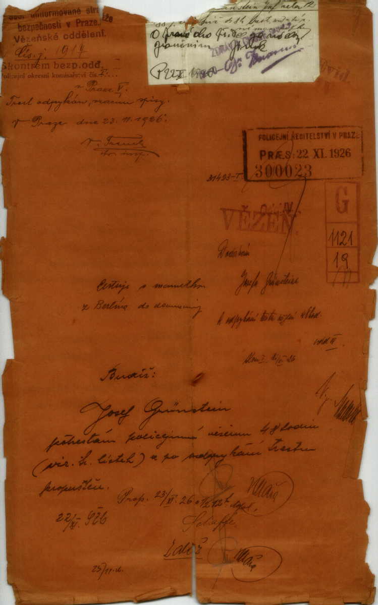 National archives Prague > Police Directorate Prague > 1941-1950 > G > Grünstein Josef