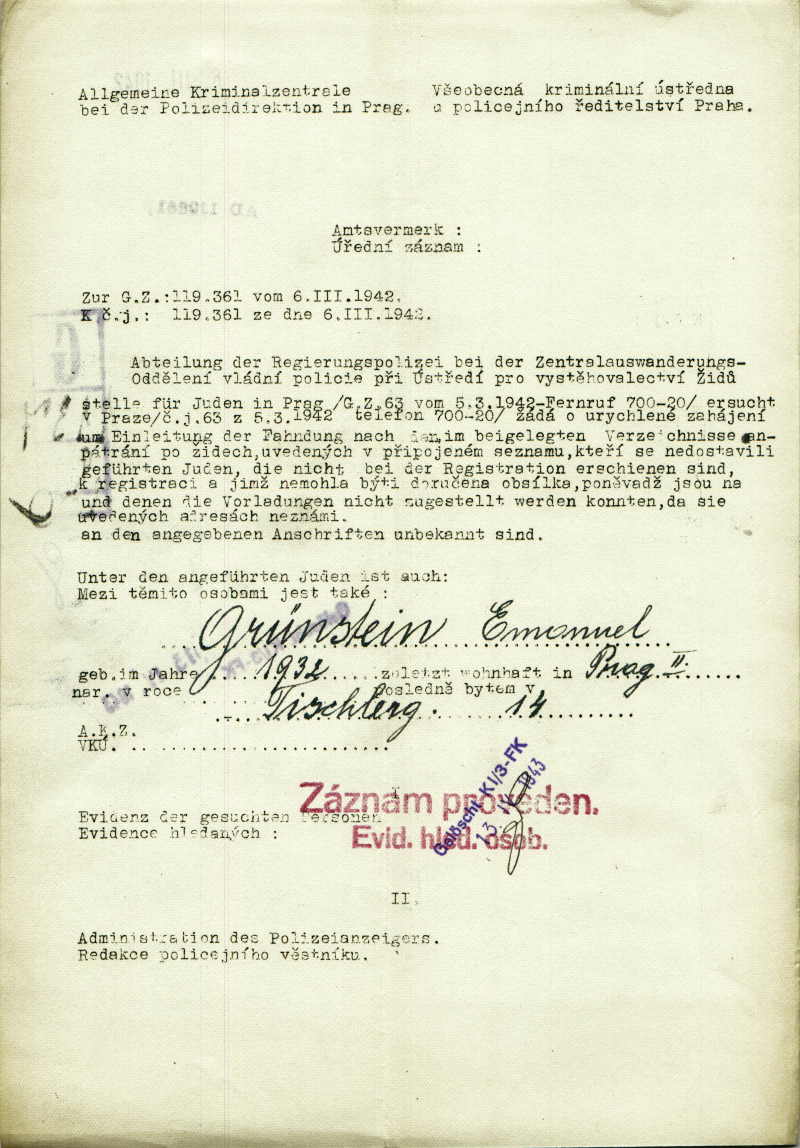 National archives Prague > Police Directorate Prague > 1941-1950 > G > Grünstein Emanuel