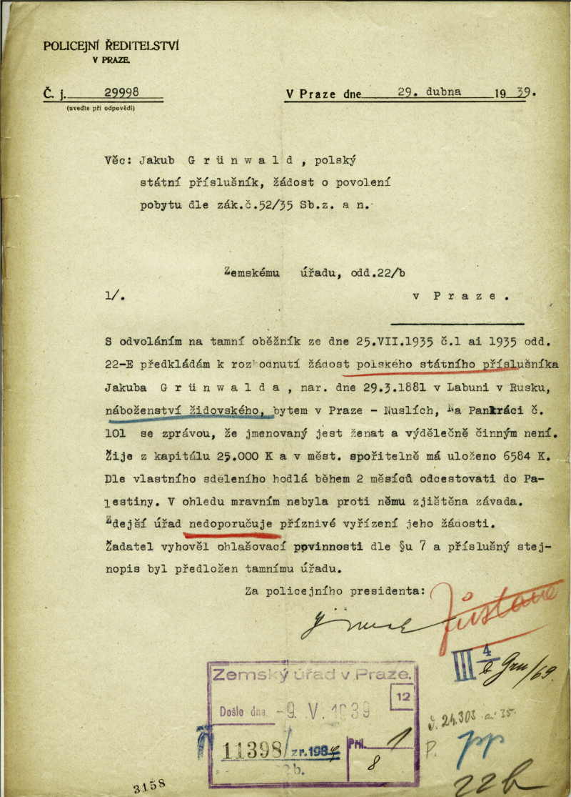 Grünwald Jakob: Vyjádření k žádosti o povolení pobytu