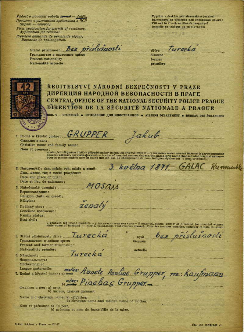 National archives Prague > Police Directorate Prague > 1941-1950 > G > Grupper Jakob