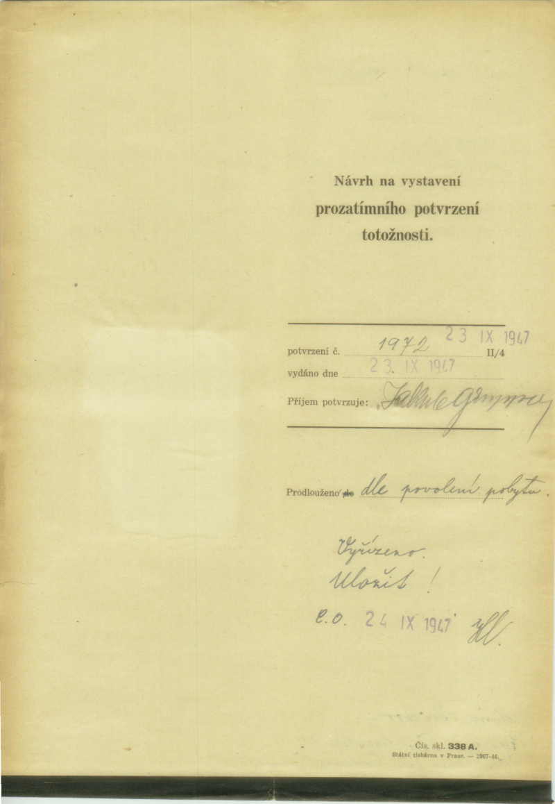 Grupper Jakob: Návrh na vystavení prozatímního potvrzení totožnosti