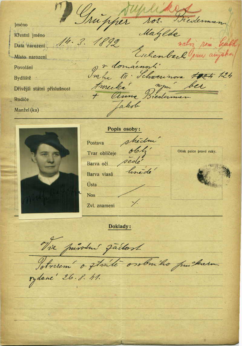 National archives Prague > Police Directorate Prague > 1941-1950 > G > Grupperová Mathilde