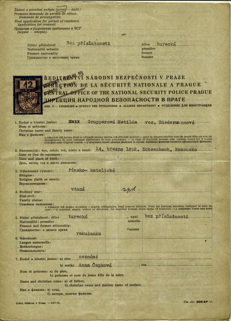 National archives Prague > Police Directorate Prague > 1941-1950 > G > Grupperová Mathilde