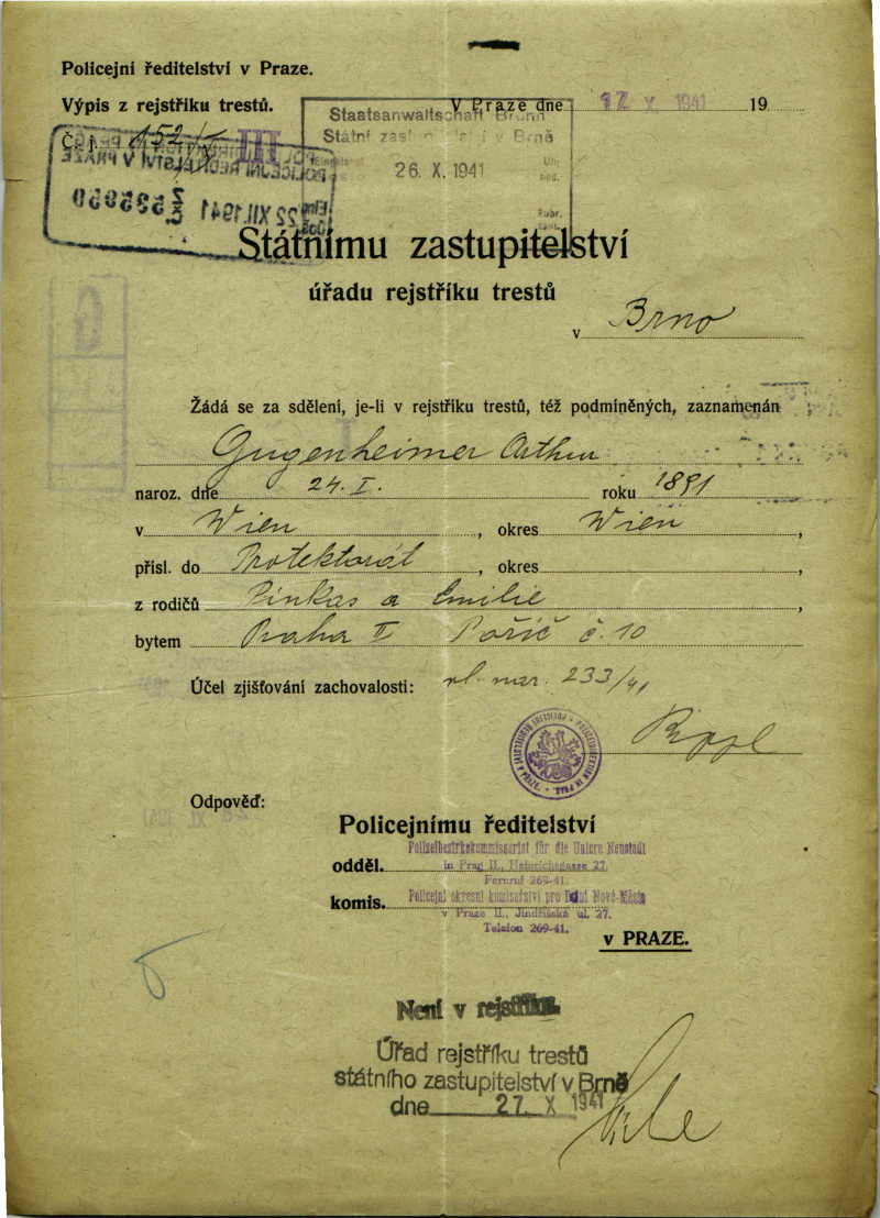 National archives Prague > Police Directorate Prague > 1941-1950 > G > Gugenheimer Artur