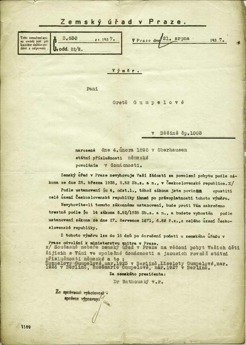 National archives Prague > Police Directorate Prague > 1941-1950 > G > Gumpelová Gréta