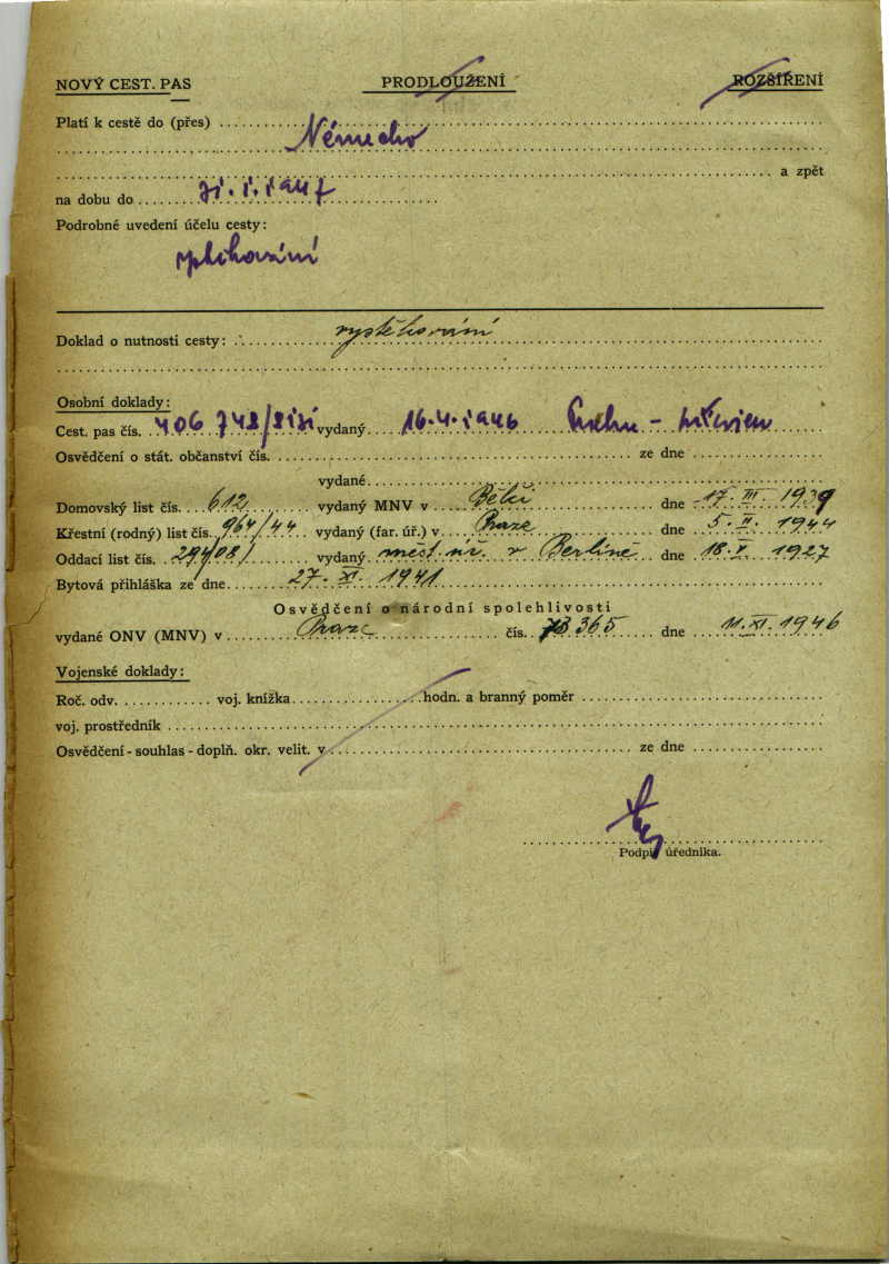 Guth Josef: Passport application