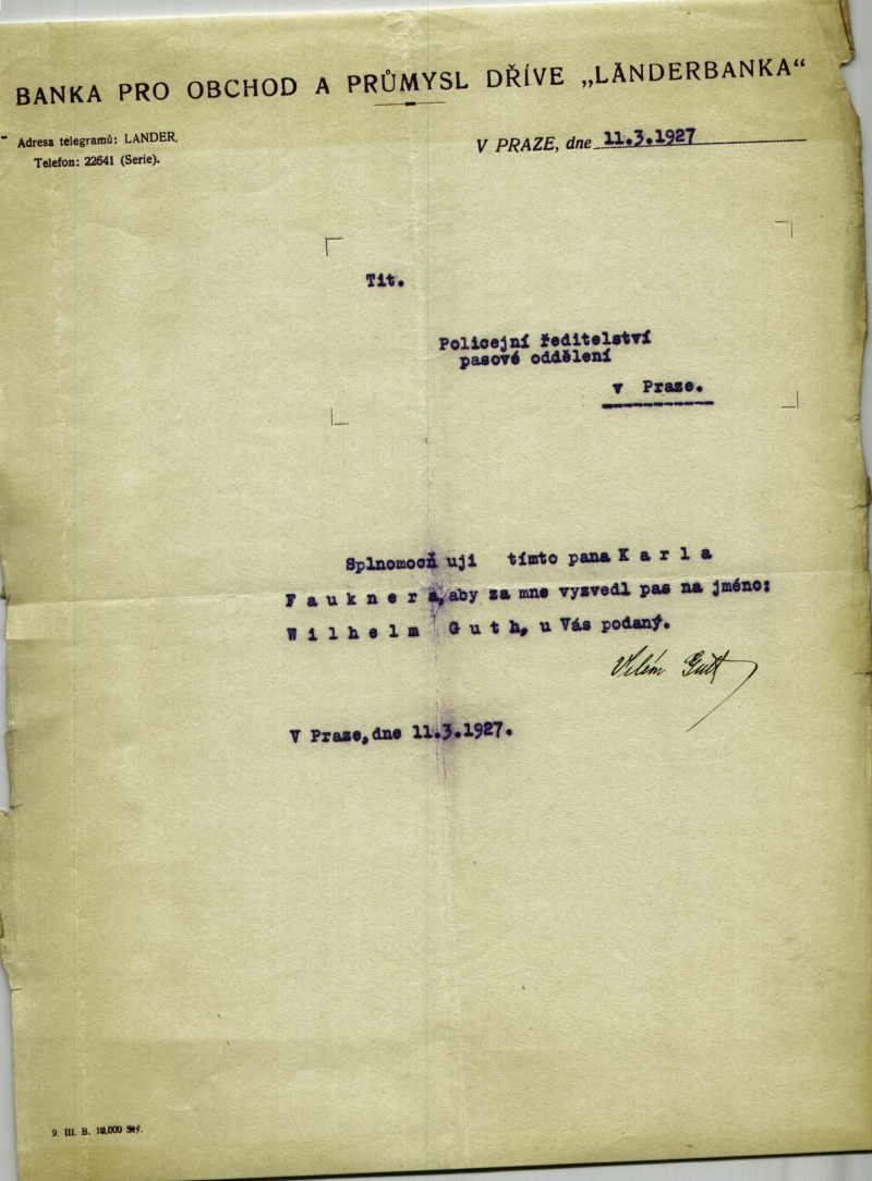 Guth Vilém: Zplnomocnění k vyzvednutí cestovního pasu