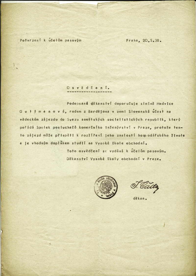 Guttmannová Hedvika: Doporučení k účasti na vědeckém zájezdu