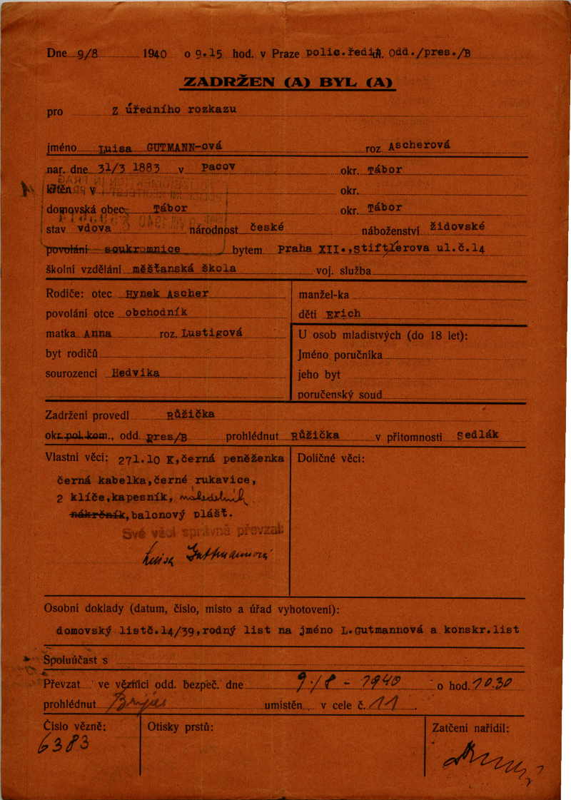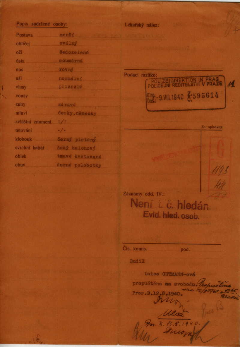 National archives Prague > Police Directorate Prague > 1941-1950 > G > Guttmannová Luisa