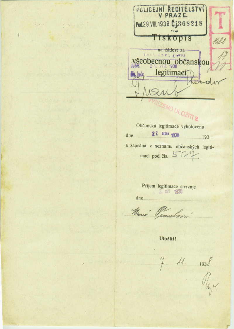 Traub Theodor: Identity card application