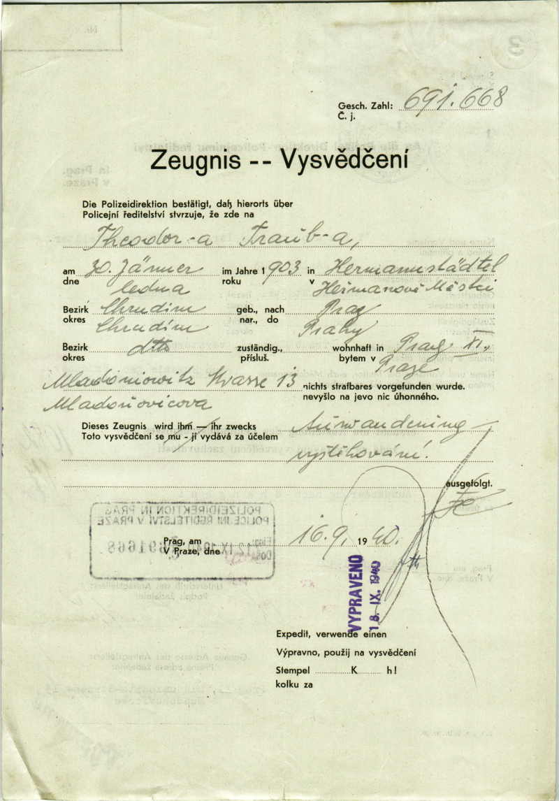 National archives Prague > Police Directorate Prague > 1931-1940 > T > Traub Theodor