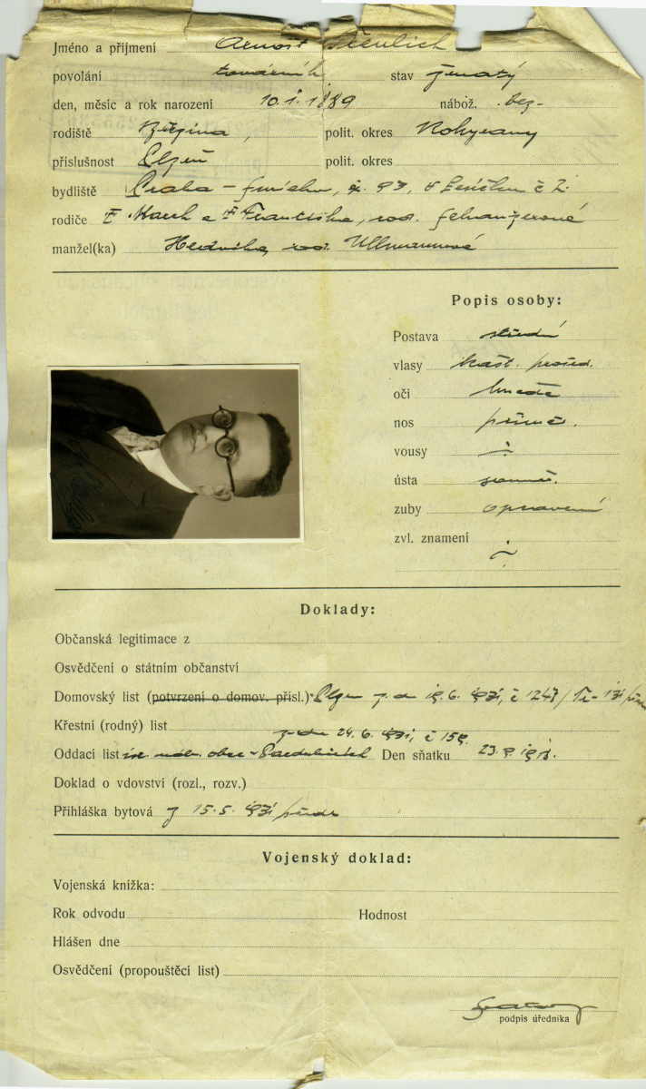 Treulich Arnošt: Identity card application