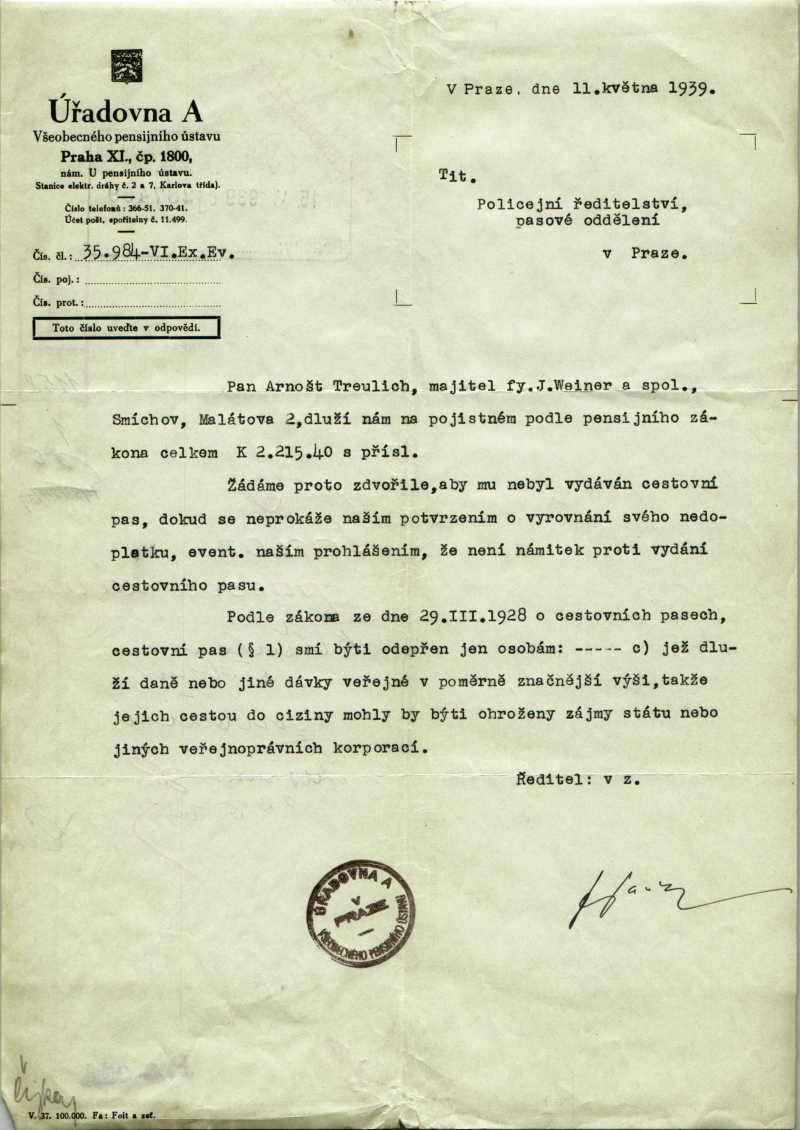 National archives Prague > Police Directorate Prague > 1931-1940 > T > Treulich Arnošt