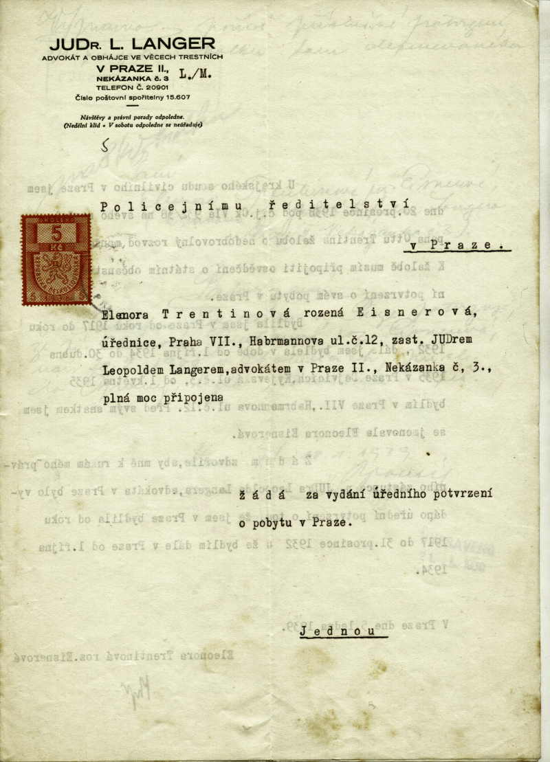 National archives Prague > Police Directorate Prague > 1931-1940 > T > Trentinová Eleonora