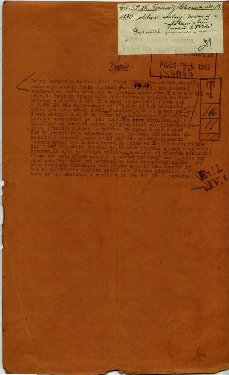 National archives Prague > Police Directorate Prague > 1931-1940 > T > Taussig Alexander