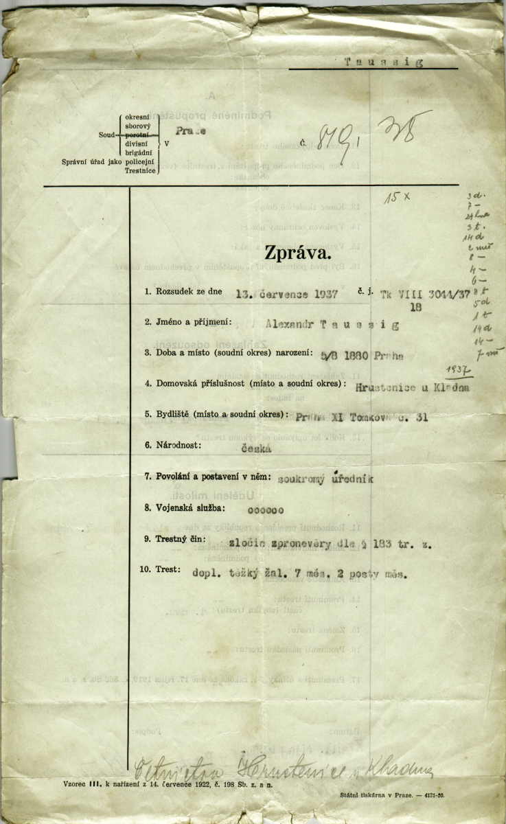 National archives Prague > Police Directorate Prague > 1931-1940 > T > Taussig Alexander