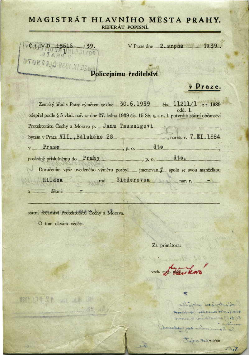 Taussig Johann: Ztráta státního občanství