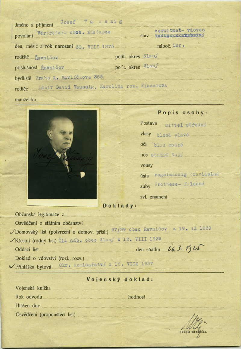 National archives Prague > Police Directorate Prague > 1931-1940 > T > Taussig Josef
