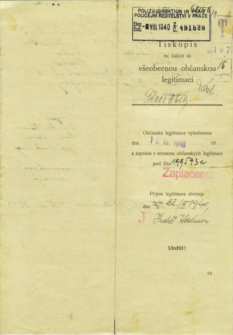 Taussig Karel: Identity card application