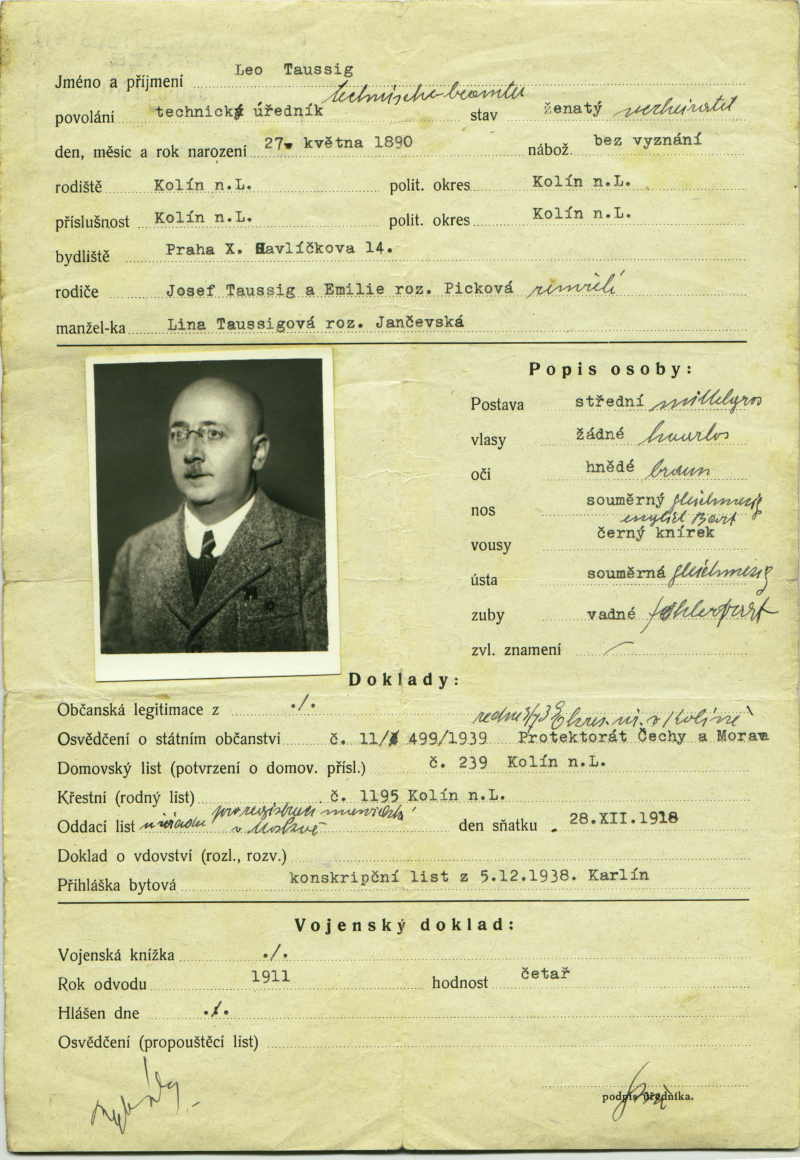 Taussig Leo: Identity card application