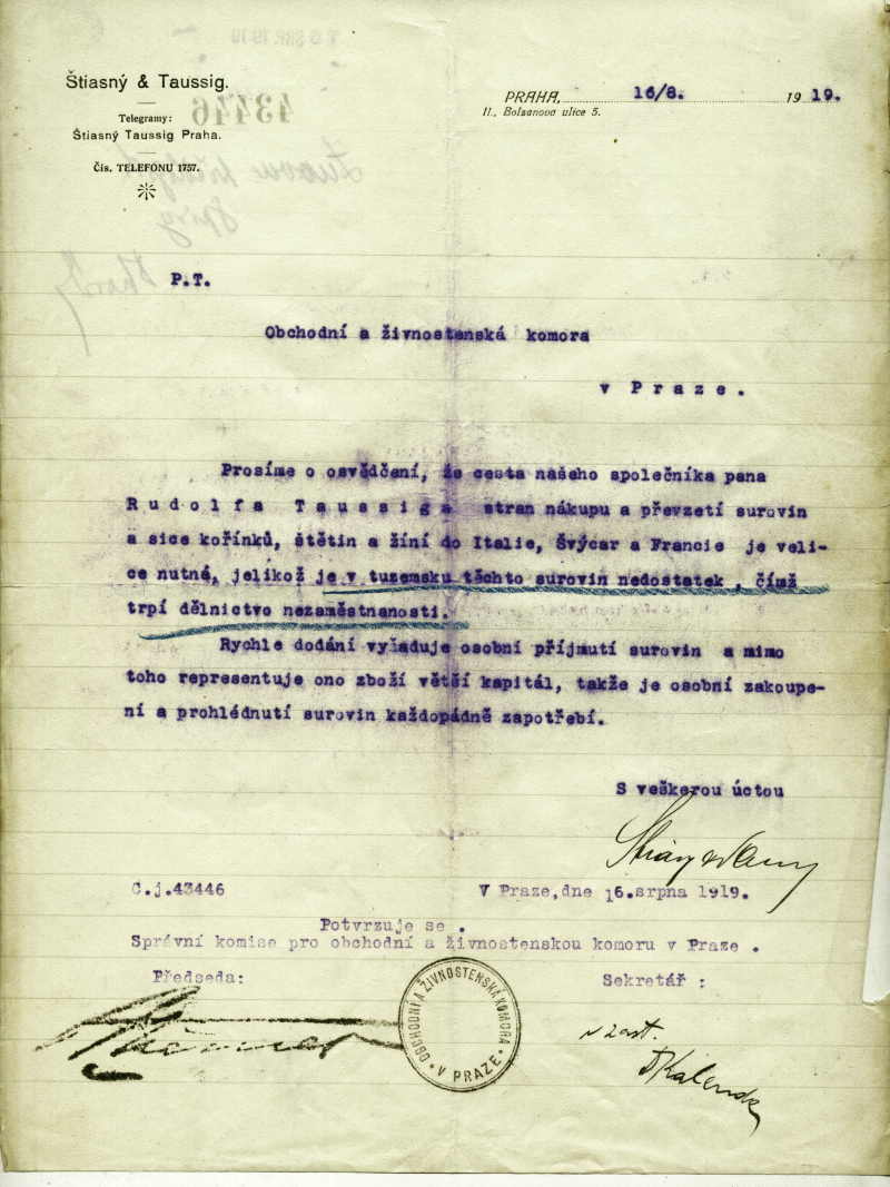 Taussig Rudolf: Žádost o potvrzení chystané cesty do zahraničí