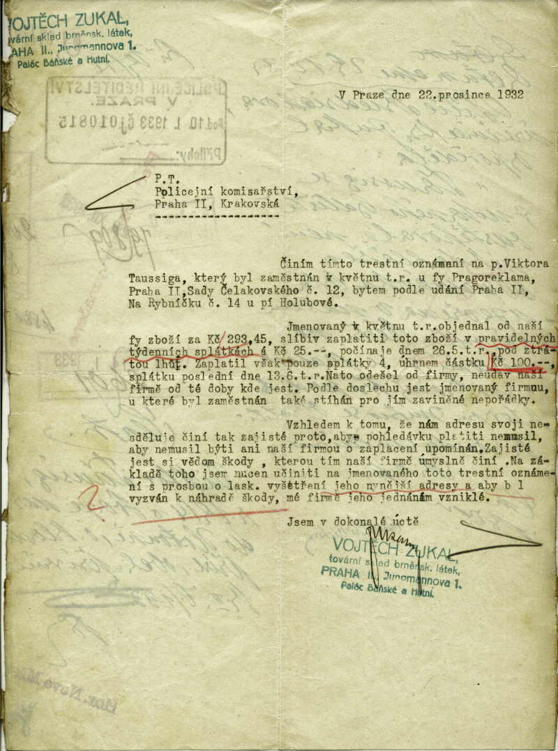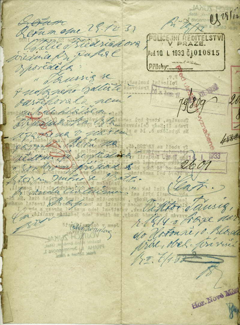 Taussig Viktor: Trestní oznámení