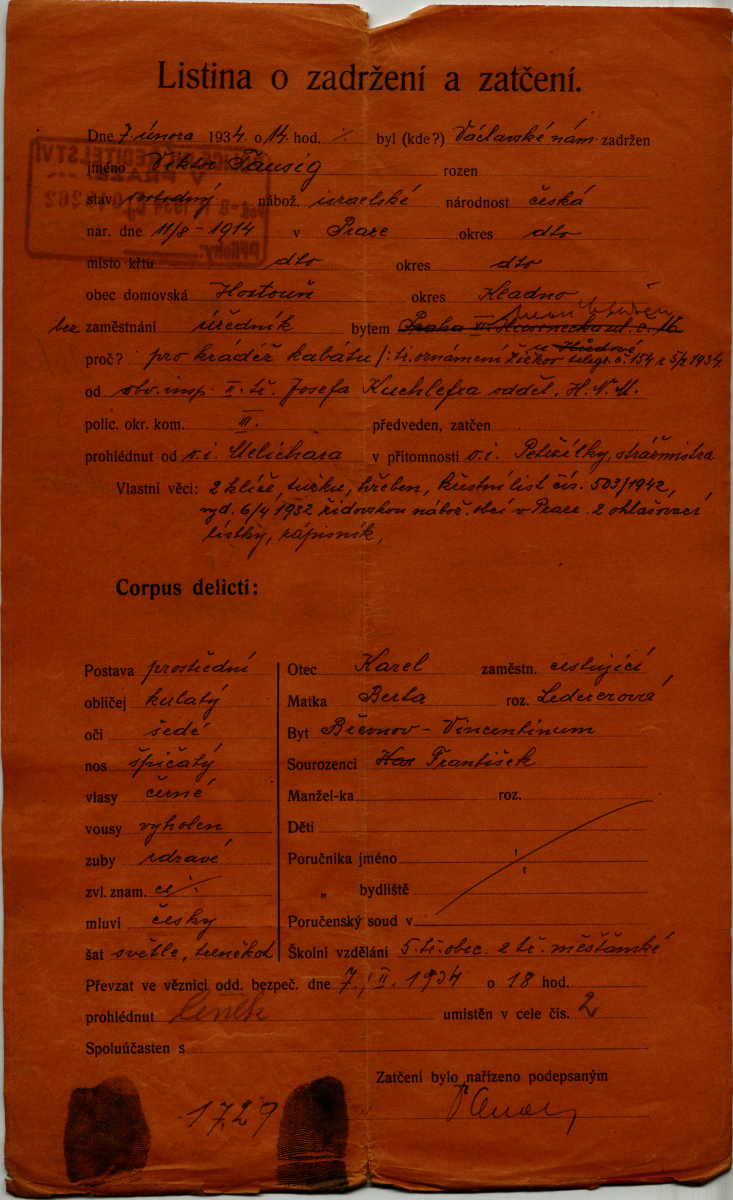 National archives Prague > Police Directorate Prague > 1931-1940 > T > Taussig Viktor