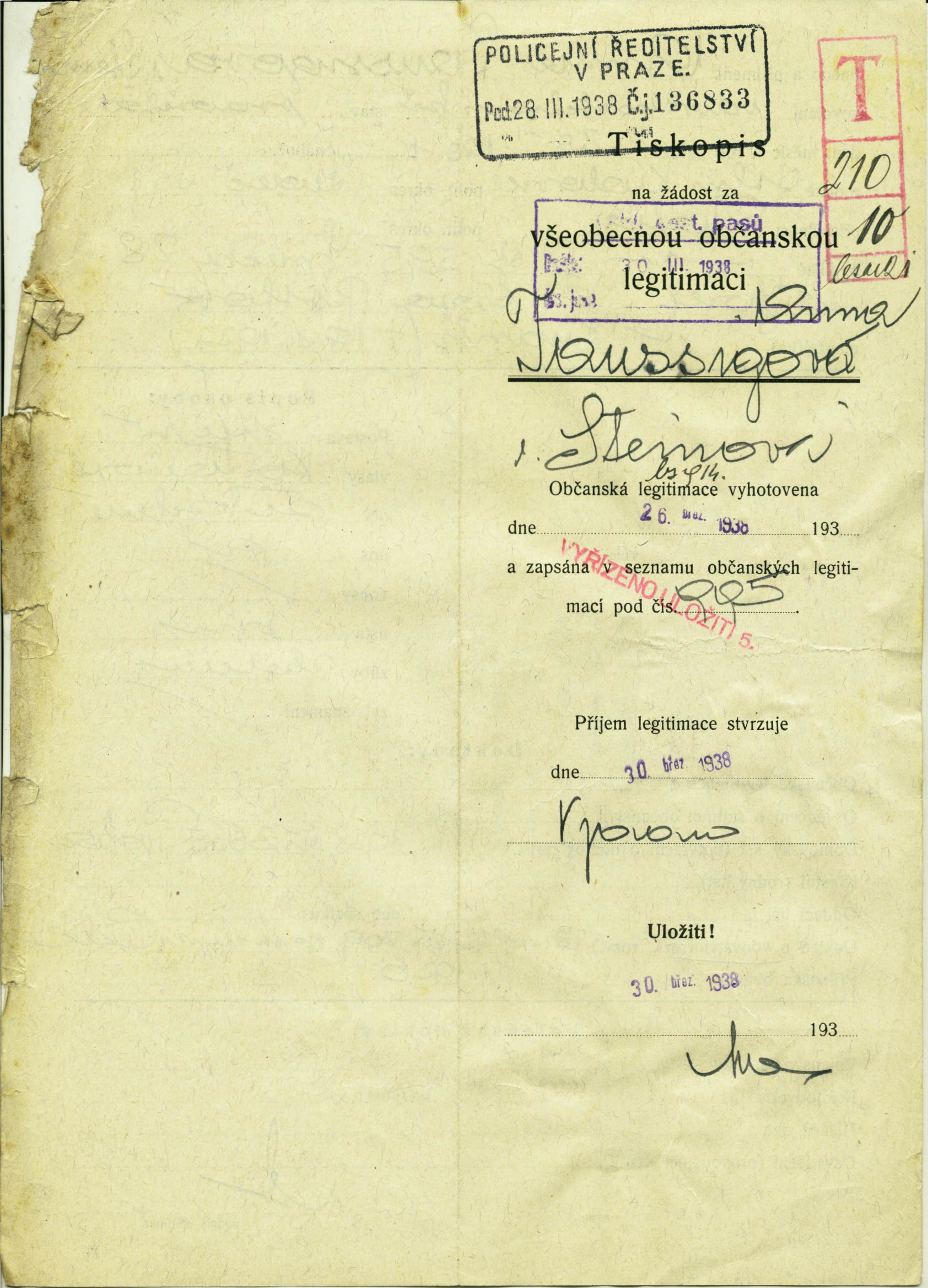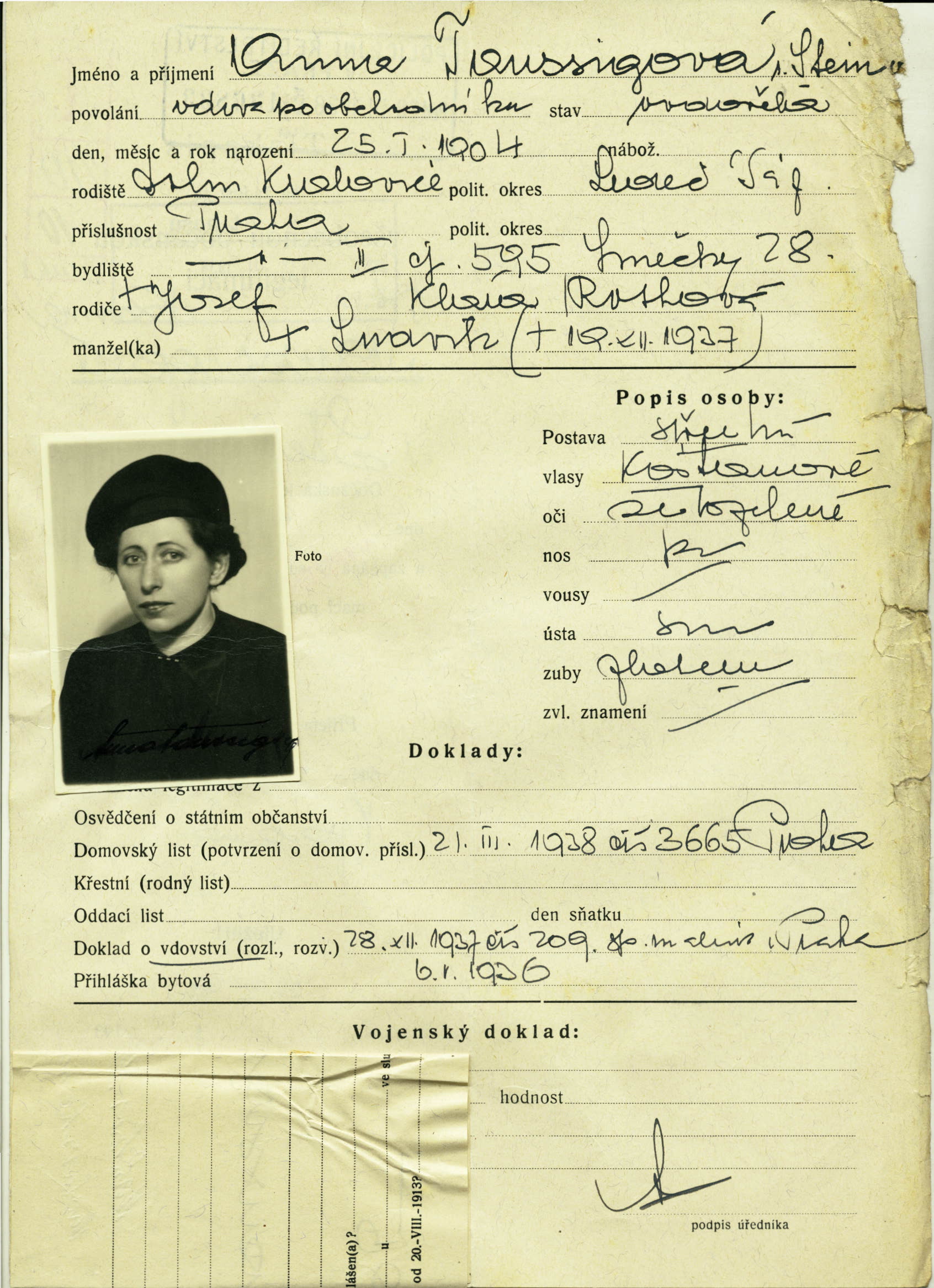 Taussigová Anna: Identity card application