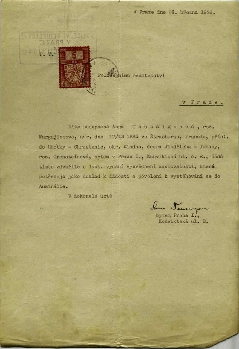 National archives Prague > Police Directorate Prague > 1931-1940 > T > Taussigová Anna