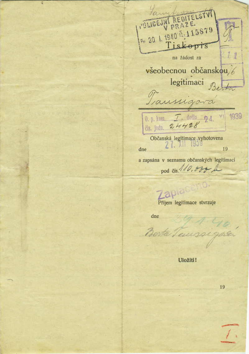 Taussigová Berta: Identity card application