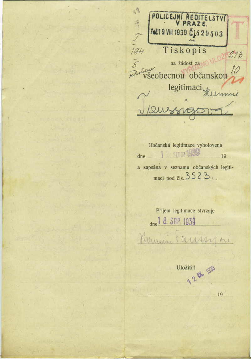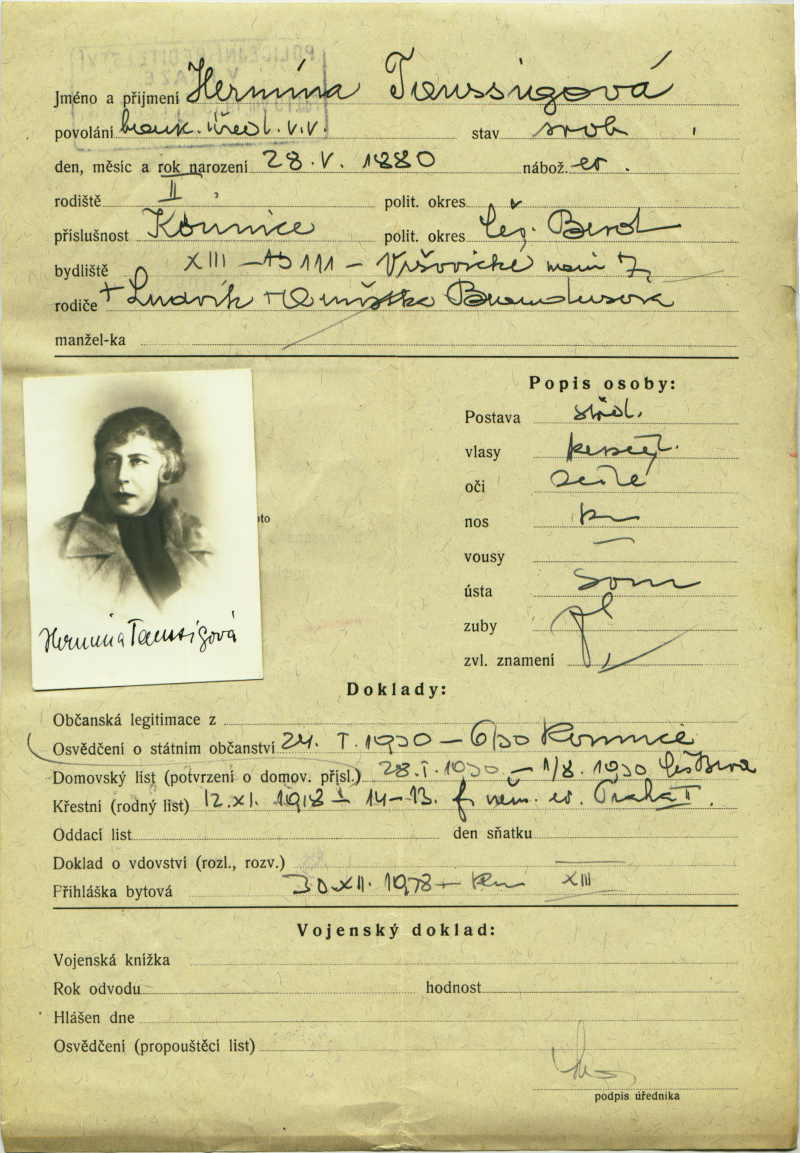 Taussigová Hermine: Identity card application