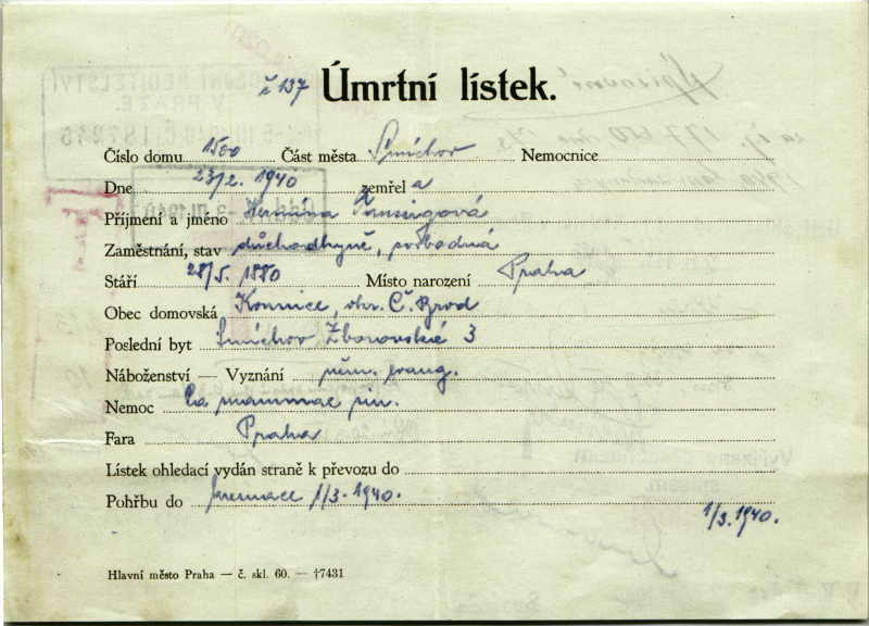 This database contains the names and fates of those who were deported from the territory of today’s Czech Republic, be it their homeland or may they have been deported to the Theresienstadt ghetto before from different european countries. Further, it contains basic information on those men, women and children, most of whom were Roma or Sinti, who died as prisoners of the so-called „Gypsy camp I“ Lety u Písku.