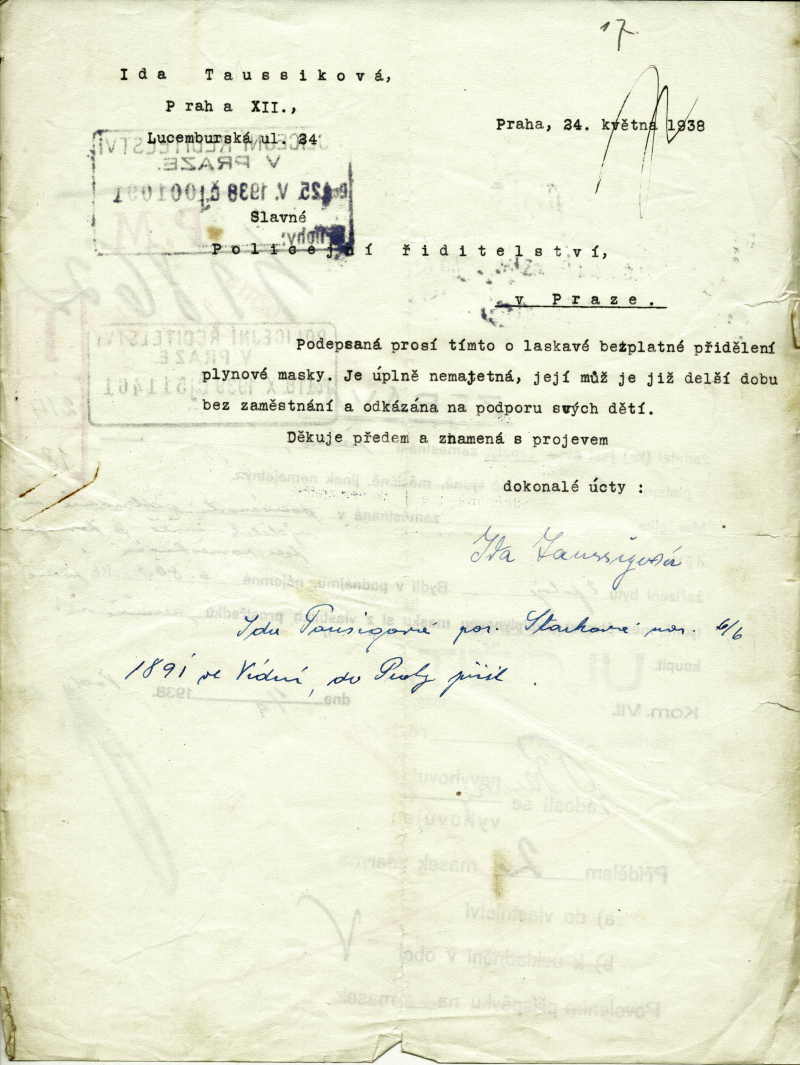 Taussigová Ida: Application for gas mask