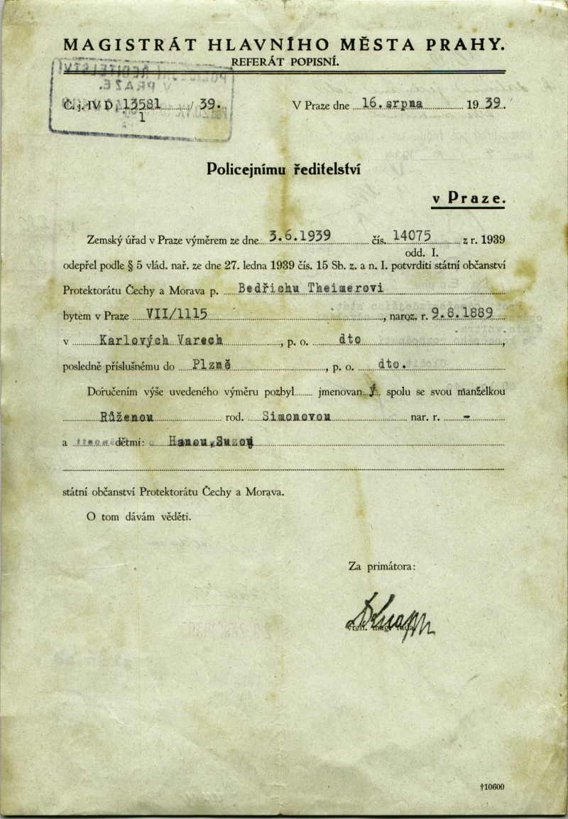 National archives Prague > Police Directorate Prague > 1931-1940 > T > Theimer Bedřich