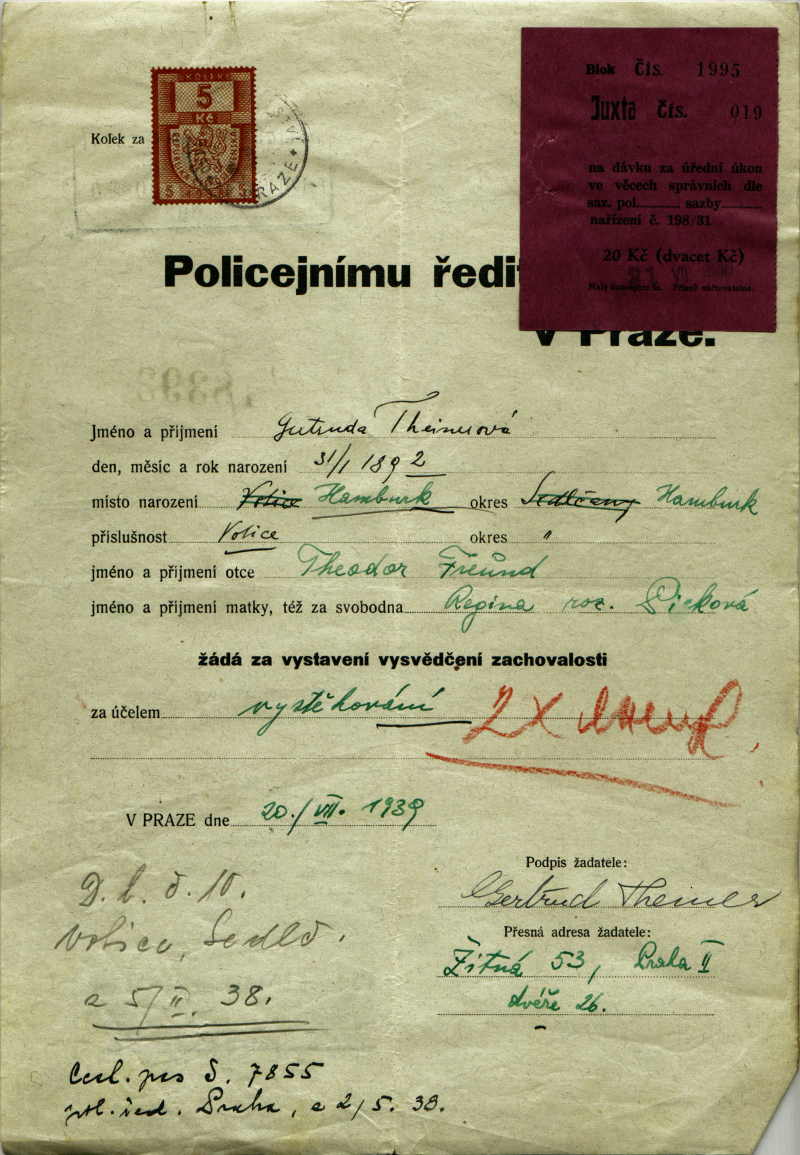National archives Prague > Police Directorate Prague > 1931-1940 > T > Theinerová Gertrude