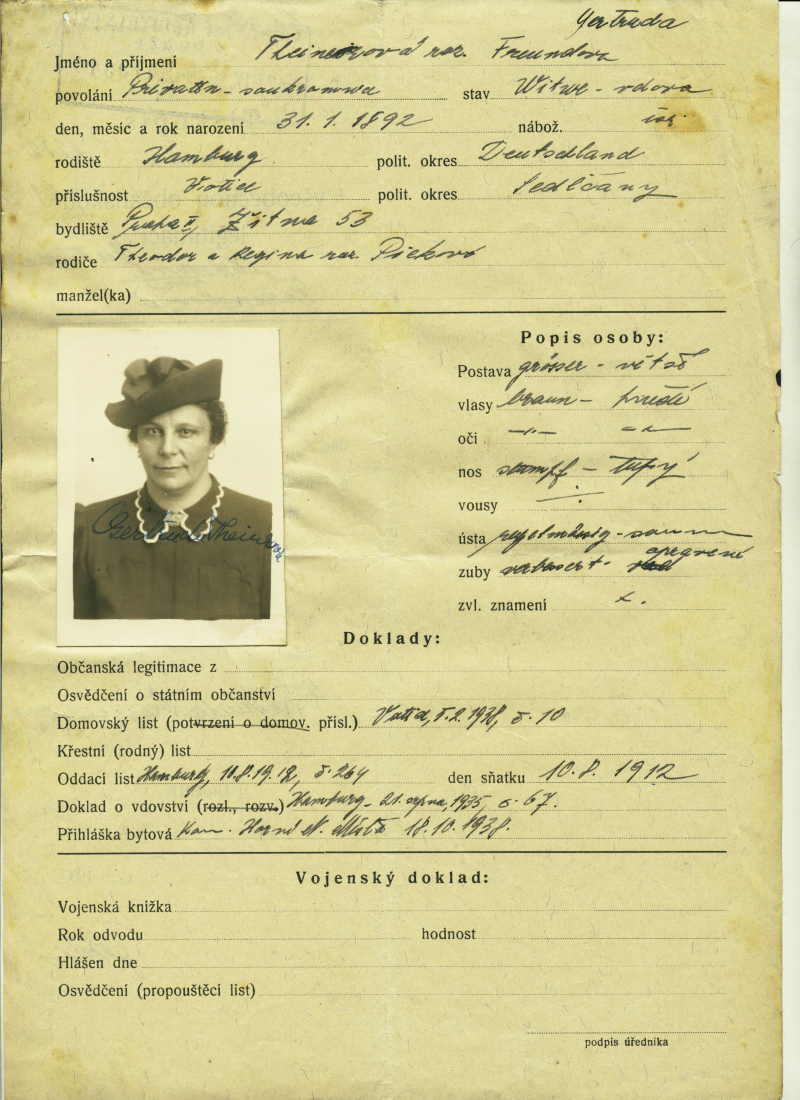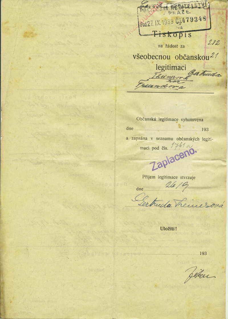 Theinerová Gertrude: Identity card application