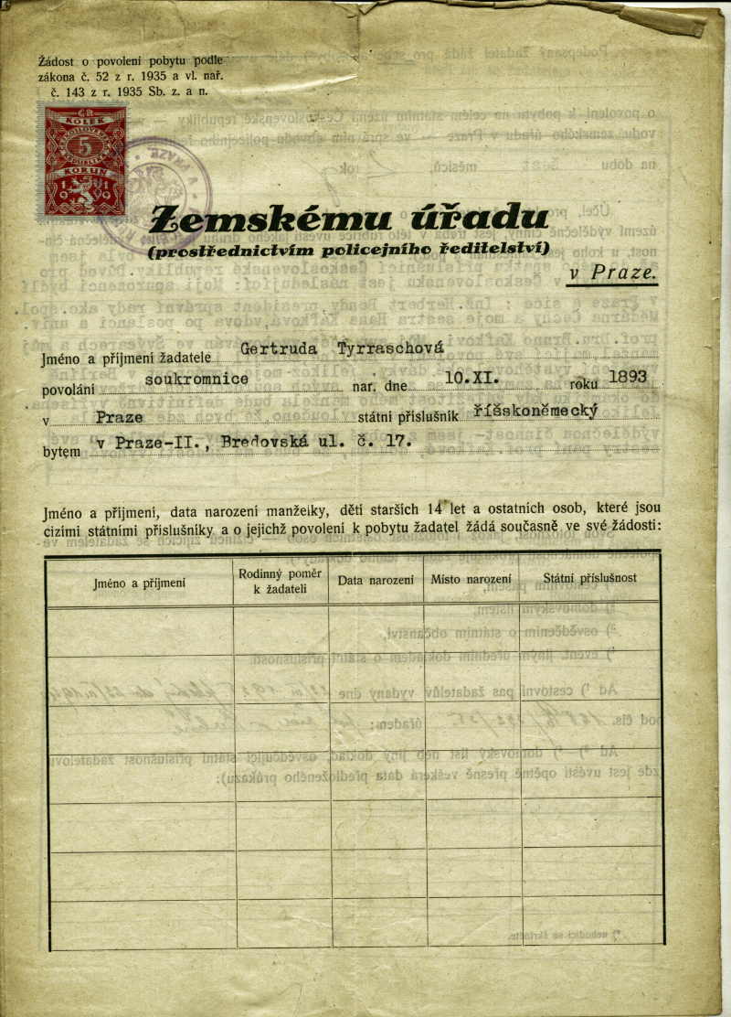 National archives Prague > Police Directorate Prague > 1941-1950 > T > Tyrraschová Gertruda